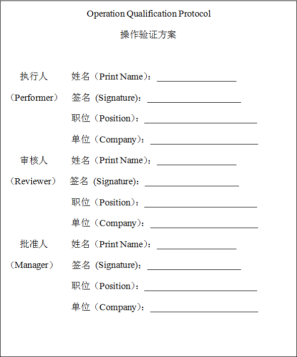 本次操作驗證(Operation Qualification)文件填寫目的是為了規(guī)范